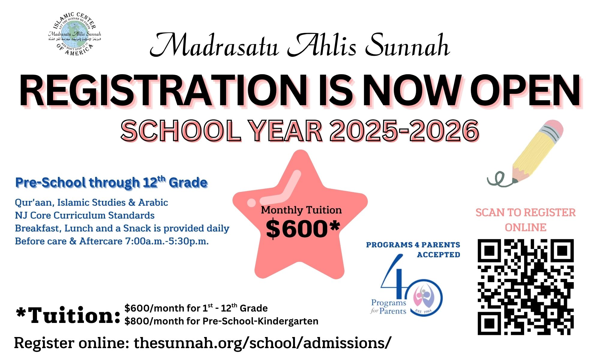 Enroll your children in Madrasatu Ahlis Sunnah Islamic School, which offers preschool to 12th grade education.
